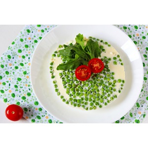 Вылить яично-молочную смесь к горошку. |