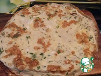 Это основные ингредиенты. 4 яйца слегка взбить вилкой, посолить, добавить муку, 4 ст. л. жирного молока и рубленную зелень /у меня укроп, петрушка и зеленый лук/. |