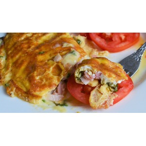 Завернуть с одной стороны омлет, получив полукруг. Прожарить еще по минутке с каждой стороны. Подавать горячим. |