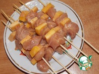 На деревянные шпажки надеть филе, чередуя с тыквой. |