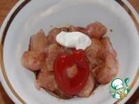 Куриное филе порезать небольшими кубиками. Добавить соевый соус. |
