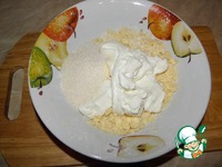 Теперь нам понадобится еще мука, примерно грамм 30-40. Высыпаем ее на стол, выкладываем на нее творожное тесто и быстро замешиваем до гладкого мягкого состояния |