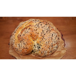 Смешать вилкой яйцо с молоком и смазать пирог. Посыпать кунжутом. |