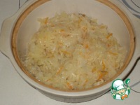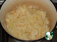Капусту, если слишком кислая, промыть холодной водой, нарезать и поставить тушиться до мягкости с небольшим количеством растительного масла и воды. Помешивать, чтобы не пригорела. |