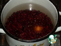Фасоль промыть, залить холодной водой и сварить до готовности, но не разварить. Можно фасоль заранее замочить, сварится быстрее. |