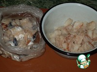 Нарезать небольшими кубиками, посолить, поперчить и приправить. Можно сбрызнуть лимонным соком. Отложить. |