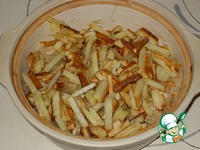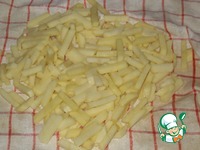 Картофель нарезать брусочками, обсушить полотенцем и обжарить почти до готовности, посолить. |