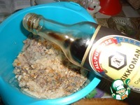 Затем добавить специи, соль, перец, воду, вымесить хорошо. |