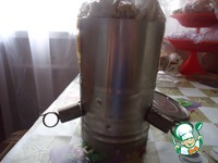 Подготовить ветчинницу, переложить связанный плотно пакет, накрыть крышкой форму. Готовить в духовке при 210 град. 60-80 минут, поставив на противень. |