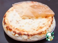 Положите внутрь сотейника тарелку подходящего диаметра, переверните запеканку и снимите бумагу. |