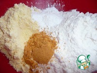 Пшеничную муку смешать с кукурузной мукой, разрыхлителем и цедрой апельсина. |