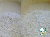 Продолжая взбивать добавить сухую смесь, вводить частями. |