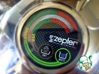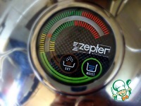 Ставим сотейник Zepter на огонь ниже среднего, нагреваем пока стрелка термоконтроллера не достигнет начала нижнего зеленого поля, затем огонь убираем до минимума. |