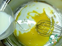 Добавляем к желткам молоко и ставим сотейник на огонь ниже среднего. Периодически помешивая готовим молочную смесь. Как только смесь начала густеть, выключаем огонь и готовим пока не загустеет. |
