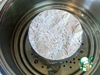 Выкладываем массу в форму, накрываем сверху куском фольги и ставим в пароварку. Накрываем крышкой и готовим на пару 20 минут. |