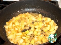 В сковороде нагреть сливочное масло, растопить в нем сахар, положить нарезанные кубиком яблоки и тушить 3 минуты, пока яблоки не станут мягкими. |