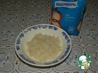 Пока мясо маринуется, отварите рис, воду сцедите и остудите. Рис не промывать! Он должен быть хорошо разваренный, он нам заменит применение крахмала. |
