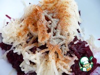 Свеклу почистить (у меня уже отварная), натереть на "китайской" терке (у меня не совсем такая, но безопасная). |