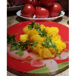Описание: Рецепт очень простой. На сайте есть похожий, но сладкий вариант. Так получилось, что осталась заготовка от мантов с тыквой. Я её пожарила. Получилось вкусно. Можно добавить в конце жарки копченое мясо, оно очень хорошо сочетается с тыквой.