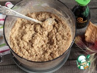 Для "бисквита" необходимо предварительно гречневую крупу (1 стак.), промыть и залить крутым кипятком (2 стак.). Когда вся вода впитается, гречневую крупу с куриным яйцом пробить блендером. |