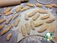 Скатать из теста колбаски. Варить в большом количестве кипящей подсоленной воды, пока они не всплывут. |