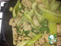 Добавить болгарский перец, жарить 3 минуты. Добавить кунжут. |