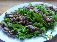 Салатные листья нарезать полосками и выложить на блюдо. |