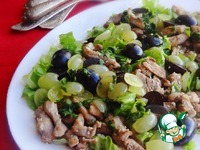 Описание: За считанные минуты Вы можете приготовить очень нарядный, вкусный и необычный салат. Классическая заправка удачно подчеркивает вкус салата и делает его абсолютно завершенным. Сейчас осень, пора самого вкусного, настоящего винограда. Самое время разнообразить виноградное меню.
