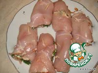 Описание: Рулетики из курочки с беконом, с чесночком и укропом... что может быть вкуснее и ароматнее. Ням-ням...