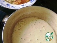 Выпекать блинчики вкуснее на топленом масле, понемногу смазывая им сковороду силиконовой кисточкой перед каждым блинчиком. Готовые блинчики складывать под салфетку и хранить горячими. |