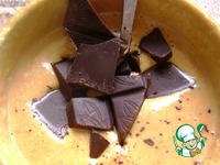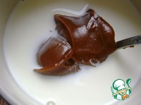 Одновременно с выпечкой блинчиков нужно приготовить карамельно-шоколадный соус. Нагреть сливки почти до кипения и залить ими вареную сгущенку. |