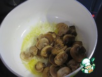 В сотейнике разогреваем сливочное масло, добавляем шампиньоны, тушим на среднем огне 5 минут |