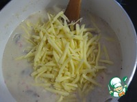 Добавляем сыр, выключаем плиту, перемешиваем |