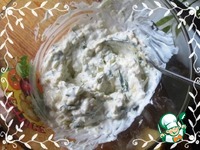 Делаем заправку. В миску выкладываем сметану, тертый сыр, нарезанные укроп и чеснок |