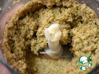 Полностью остудить. В комбайне размолоть оставшийся стакан орехов с сахарной пудрой. Добавить оставшееся масло и ещё раз взбить до кремового состояния. |