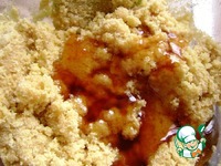 Просеянную манку залить равным объемом сиропа. У меня достаточно густой сироп от домашнего персикового варенья. |