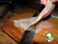 Филе разрезаем поперек один раз. Если филе очень большое можно каждую половинку разрезать поперек на 3 части. |