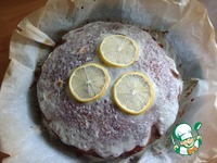 Режем тонкими дольками лимон и выкладываем сверху, присыпаем сахарной пудрой дольки и ставим на 10 минут в духовку опять при т-180 С. |