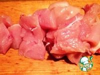 Куриное филе вымыть, обсушить, нарезать кубиками. |