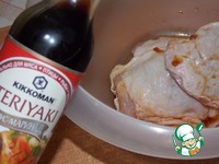 Курицу выложить в миску, добавить 1ст. л. соевого соуса. |