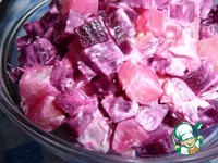 Свеклу очистить от кожуры, нарезать небольшими кубиками. |