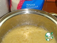 Далее засыпаем манную крупу и постоянно помешиваем, чтоб не пригорело. Когда загустеет, закрываем крышкой и оставляем немного постоять |