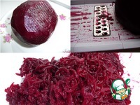 Свеклу почистить (у меня уже отварная), натереть на "китайской" терке (у меня не совсем такая, но безопасная). |