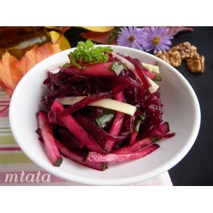 Описание: Продолжаю свекольную тему. Предлагаю очередной салат из свеклы со свежим огурцом. Очень простой диетический салат, готовится считанные минуты. Прекрасный перекус, а так же дополнение к мясным блюдам. Идею рецепта встретила в инете.