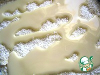 Тесто получается достаточно густое и липкое, и вылить, как рекомендовано в рецепте, его невозможно. Поэтому размазать тесто ровным слоем по форме, формируя невысокие бортики. |