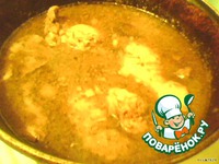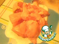 Когда масло накалится, выкладываем курочку. Обжариваем и выпариваем влагу, которая образуется при обжарке мяса. |
