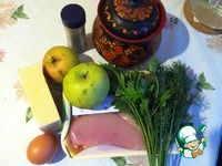Наш натюрморт: куриная грудка, яблоки, зелень, сыр, яйцо, соль и перец |