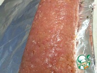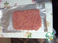 Фарш выложить на смазанную растительным маслом фольгу слоем в 1см. |