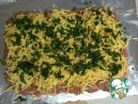 Через 40 минут снимаем фольгу с верхней части и отправляем рулет еще на 10 минут в духовку. Чтобы он подрумянился. Вот он и готов |
