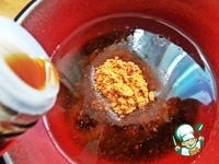 В оливковое масло высыпать пакетик приправ для запекания курицы. |